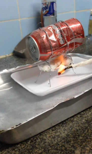 Materias:ÁlcoolDuas latinhasVelasArameMarteloIsoporPregoProcesso:Pegue s una latinha (NAO A ABRA) e faça um pequeno furo com o prego e o martelo na parte de baixo. O furo deve estar sin canto. Los neumáticos todo o líquido dentro da lata e coloque um