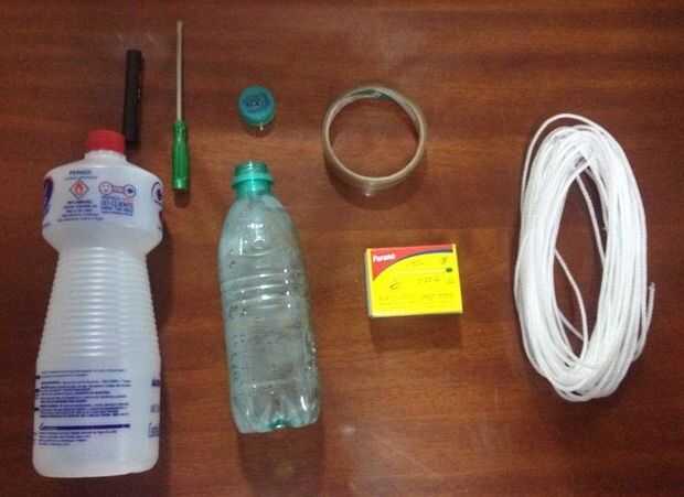 como montar um foguete caseiroPaso 1: Materiais ÁlcoolGarrafa PETVela e fósforoPaso 2: aqueça un ponta de uma faca e fure un tampa da garrafaPaso 3: Coloque uma pequena quantidade de álcool dentro da garrafaPaso 4:espalhe o alcohol dentro da garrafaP