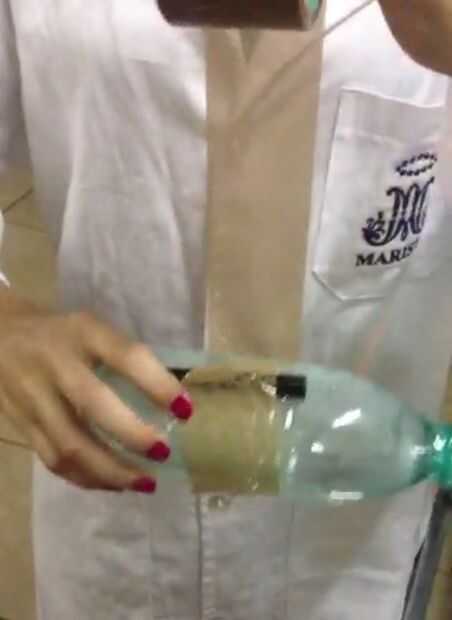 Trabalho de Física2 º año EGabriela (11), Jacqueline (16), Ana (1), Laura (19) e Thaís (40)Paso 1: Materiais 1 garrafa pet1 funil1 tachinhaIsqueiro ou fósforoÁlcoolPaso 2: Furando A Garrafa Para começar, pegue s una garrafa e faça um pequeno furo na