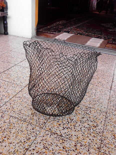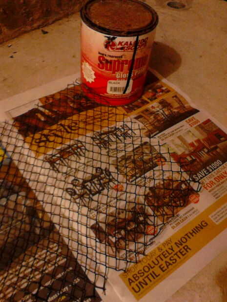 ¿Qué haces cuando tienes un cuadro feo y una canasta de alambre que ha visto días mejores? Fácil! Reutilizar, reutilizar, reutilizar. Sabiendo mi cesta era pequeño y no darme una pieza lo suficientemente grande como para sujetar a mi marco, decidí usar a la tela como un alargador de clases. Esta idea marcó el tono para mi proyecto porque entonces decidí usar a esa tela para cubrir mi cuerpo entero (eliminando la necesidad de pintar).