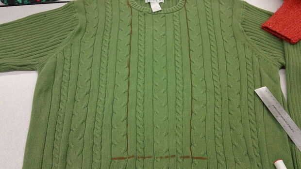 si usted no ha visto "Un cuento de Navidad" entonces esto no puede tener sentido para usted (por favor ver, una de la mejor Navidad películas siempre) este es solo un viejo suéter con fieltros cortes cosido en.Basta con mirar ese "resplando