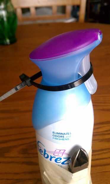 Todo lo que es, es una lata de Febreze Air Effects, una atadura, poco de cinta adhesiva y un par de tijeras baratos.