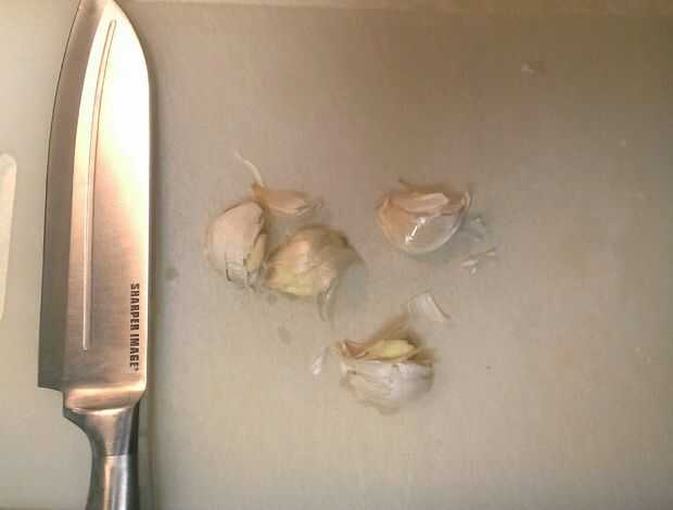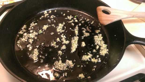 Añadir aproximadamente 1/8 taza de aceite de oliva a la sartén. Aceite de oliva normal funciona así. Gire el calor a med/baja. Aplastar los dientes de ajo, colocando la parte plana de un cuchillo grande contra los dientes y la parte superior de la parte plana de la hoja con el puño de la libra. Este método grietas los dientes abiertos y permitirá que el ajo se deslice justo fuera de la piel parecida al papel. Picar el ajo y saltear en aceite de oliva hasta que estén suaves. Asegúrese de no dejar el ajo quema. Si lo hace, deberás iniciar el proceso de ajo otra vez en una sartén limpia. Ajo quemado es desagradable y arruinará su plato. Cuando el ajo se ablande, apagar el fuego.