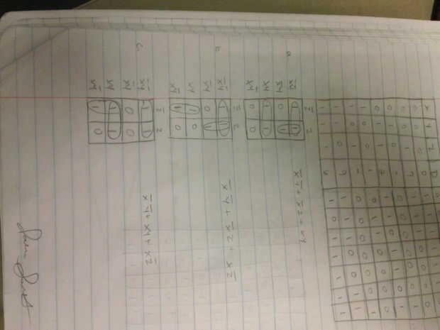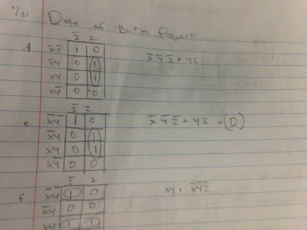 Después de terminar su tabla de verdad, ya estás listo para desarrollar una palabra para cada segmento. Para encontrar tu palabra, utiliza un método llamado K-cartografía; K asignación es un proceso rápido y fácil encontrar grupos cuando el interruptor está encendido (creación de una palabra). El cuadro tiene un par de ejemplos de cuando un segmento está encendido, se crea el grupo y la palabra se lleva a cabo.
