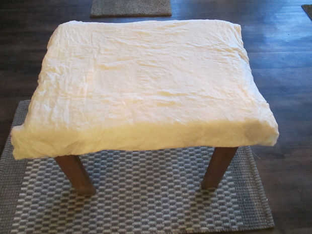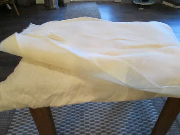La espuma no es suficiente. Necesita envolver con bateo para crear un bonito cojín redondeado. El buckram es un tipo rígido de muselina que se enrolla sobre el bateo, para dar un medio fuerte que resistirá a grapar. Si usted tiene un pedazo de tela de la decoración del hogar, que va a funcionar igual de bien.