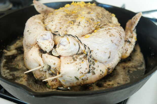 Asar el pollo durante una hora; Hilvanar un par de veces a través del tiempo de asado.