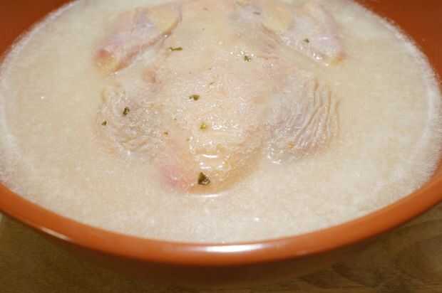 Cubra y refrigere durante la noche. No deje el pollo en el caldo durante más de 8 horas.