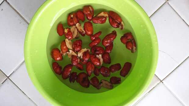 Cuando tengas aproximadamente 1,5 puñados de fechas rojas picadas, deje que se remoje en agua durante unos 5-10 minutos.