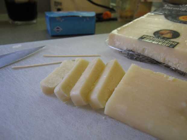 Corte el queso. Depende del tamaño de las fechas. Me gusta queso pega unos 1/4" por un lado, la misma longitud que las fechas.