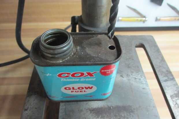 Usando un taladro de taladro un agujero de ventilación en el extremo opuesto de la tapa. Este orificio servirá también como punto de relleno.