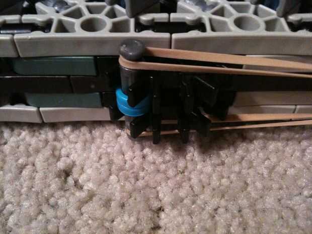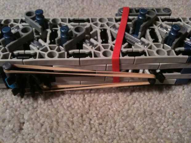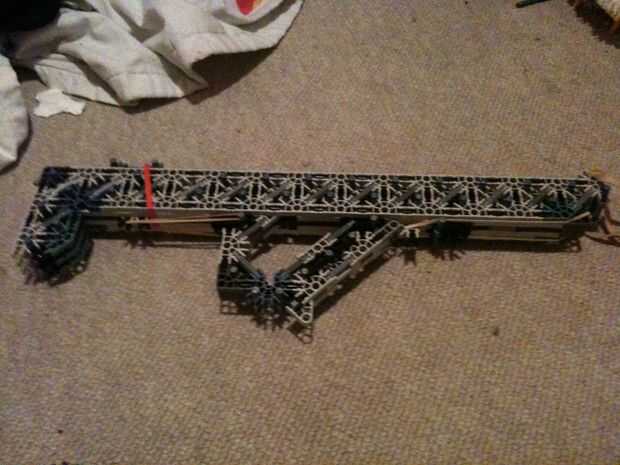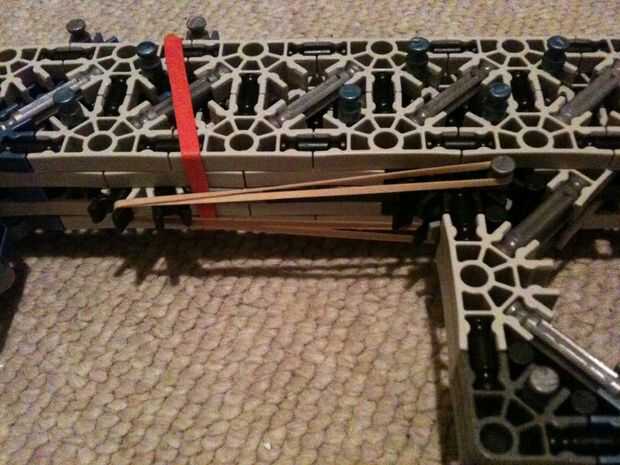 Lo probé con la munición del tirachinas tamaño barra de rojo y dos atado bandas de tamaño de 64 y tengo alrededor de 50 o 60 pies. No es tan bueno como el viejo, y necesito hacer el barril ya para conseguir más gama. El gatillo es difícil de tirar, pero se vuelve más fácil con la práctica.