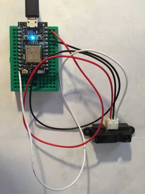 Conecte el fotón en el sensor de distancia usando el pin A0 del fotón. Conectar alimentación y tierra del sensor y pernos 3V3 GND de los fotones.