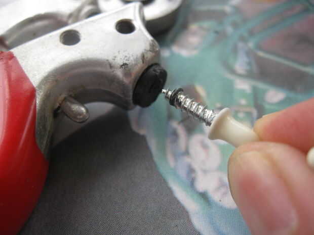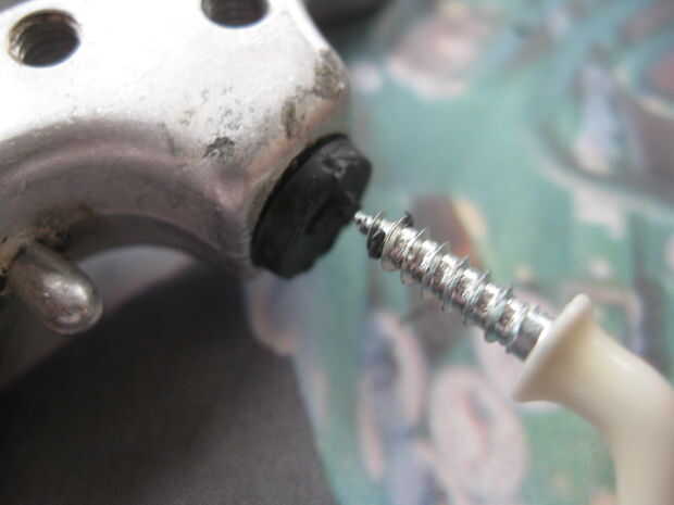 Use un gancho de taza. Tornillo en cuidadosamente, por lo que no tira el agujero, luego sáquelo con la parte del gancho. Fácil. La parte más difícil es poner uno nuevo. Se los recomiendo ahora en las nuevas instrucciones para calentar la almohadilla de primera. Suspiro.