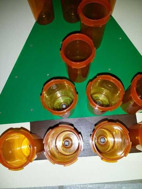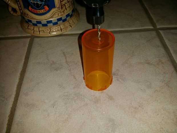 Preparar las botellas de la píldora por taladrar un agujero en el centro de la parte inferior de cada con el mismo 3/32 broca de que usted ha estado usando.