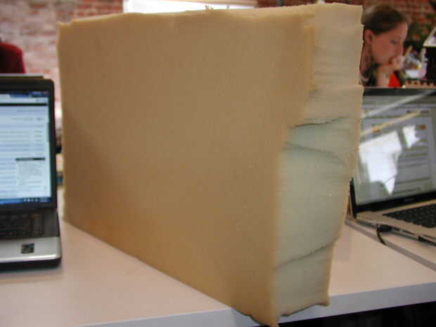 El verdadero reto viene a qué objeto desea dentro de la cápsula. Para obtener las formas exactas que quería por mi espuma, acabé cortando desde un bloque gigante mediante láser ' cortador del laser delTECH de la tienda .