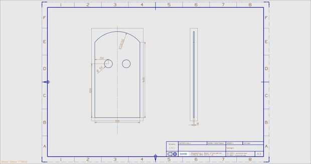 Para la placa de alguna manera es un poco diferente por el contorno ronda que tenemos que seguir. Aquí utilizamos una placa de multiplex (grueso de 3). Tener un bajo espesor por lo que puede inclinarse un poco sin romperse. Dimensiones: