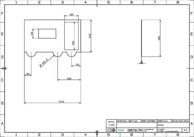 Después de esto debemos tener una placa base y las paredes laterales honradas. Observe también el doble de la pared. Esta parte se utiliza para ocultar a la electrónica y otros mecanismos que deben quedar oculto a la vista debido a razones éticas y de seguridad.