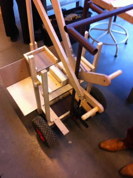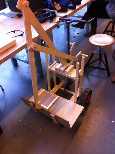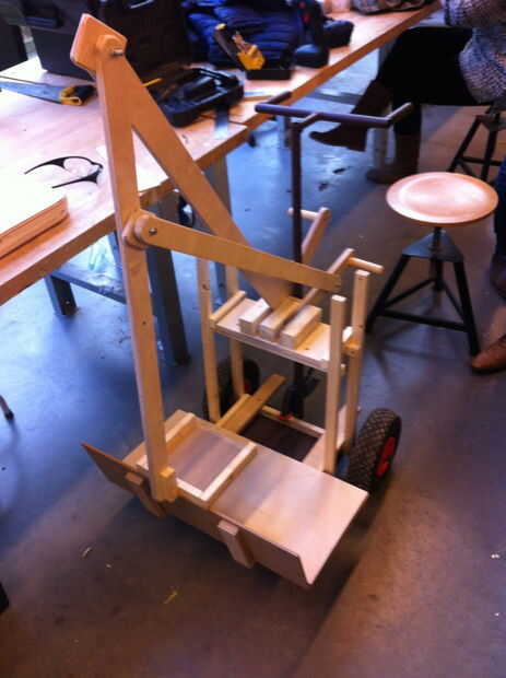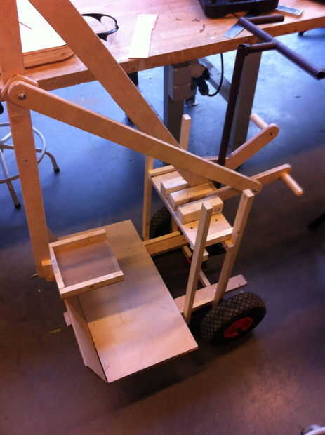 La grúa tiene dos palancas que utilizan para mover la grúa.