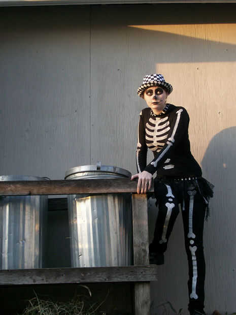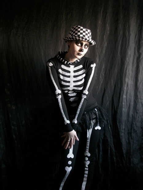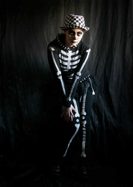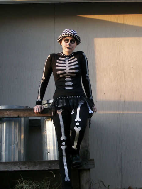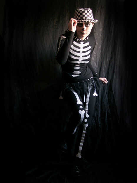 mi disfraz de este halloween. Hice el traje entero (menos el sombrero) desde cero. Usé mi propio patronaje, corte, cosido y de la mano pintado todo. Equipo incluye pantalones, camisa con capucha y una cosa poco tutu solo por diversión. El tutu tiene tela de acoplamiento spider web con pedacitos de scrappy piezas colgando fuera y aún unos cuantos huesos . ... Tenía un montón de diversión con este maquillaje también fue hecho por mí. Yo tiro y modelado para las fotos como siempre.
