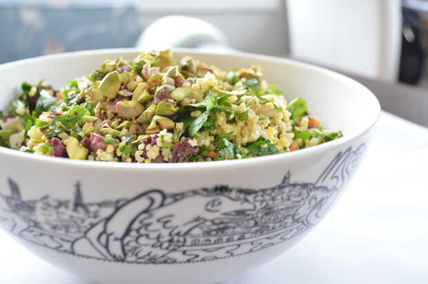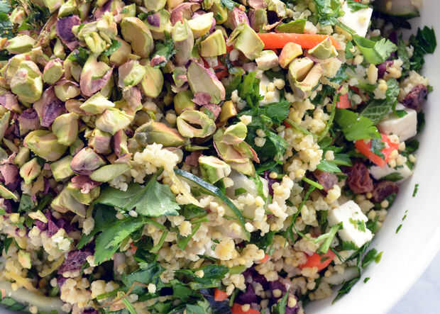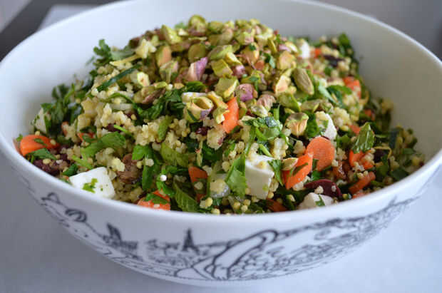 A lo largo, el cuarto y luego rebanada de zanahoria y pepino. Ralladura y jugo de lemon(s). Aproximadamente picar hierbas. Hoyo y picar las aceitunas. Cubo de queso feta. Combine todos los ingredientes en un tazón grande y doble para incorporar. Sabor para condimentos. Sé que todo el mundo odia que se les diga que, pero que posiblemente no puedo saber cómo salado su aceitunas o queso feta son, por lo que sólo vas a tener a gusto a medida que avanza! Encima con los pistachos picados.
