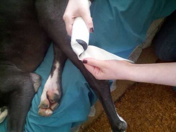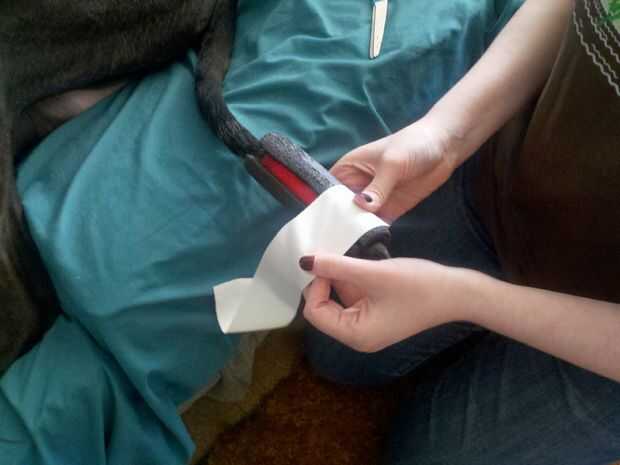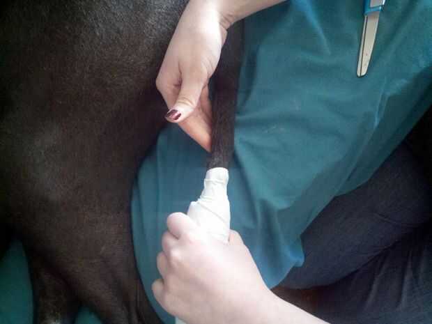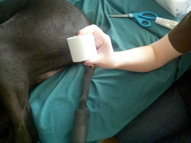 Sé que algunas personas pueden pensar que soy horrible por sugerir poner cinta en la cola de un perro, pero confía en mí está bien. Al retirar el vendaje de la cinta se saque algún pelo con él, pero no lo suficiente para dañar el perro.
