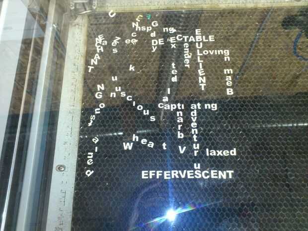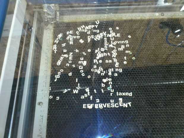 Los resultados son bastante chulas. La cama de la máquina de láser está llena de letras diminutas! Que limpió!