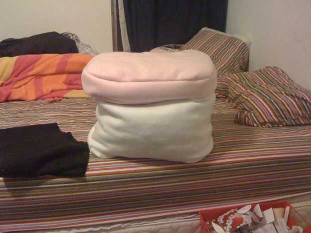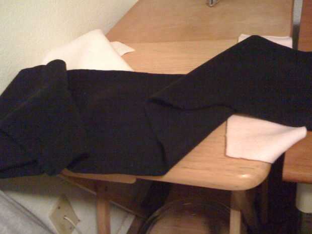 Cuadro #4: vuelta el paño negro adentro hacia fuera para que las costuras están en el interior, poner arroz y spam dentro de