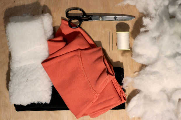 Aquí está una lista de los materiales que lo necesitan para este proyecto. En realidad usé un suéter viejo para algunos de la tela que conseguí en una tienda de 99 centavos y el relleno de una almohada vieja que estaba a punto de ser lanzado lejos. Así que trate de asaltar su tienda de segunda mano armario local para algunas de las cosas que usted necesita!