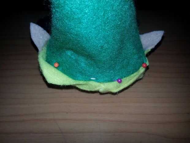 Doblar el sombrero hacia abajo en un ángulo agradable cuando es completa :) - mina ubicado entre el brazo y el cuello