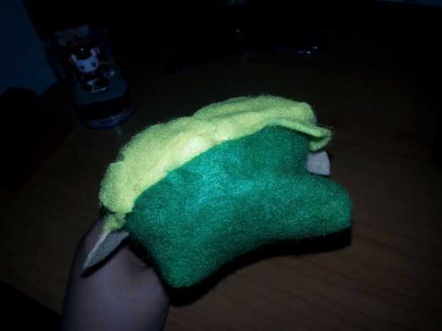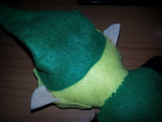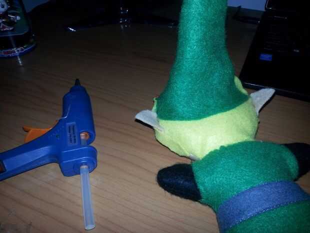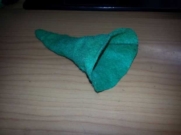 Dos piezas de triángulos de fieltro (incluso no siguen un patrón, yo a cortar dos piezas al azar. Sólo asegúrese de que es más largo de lo que es más amplio.