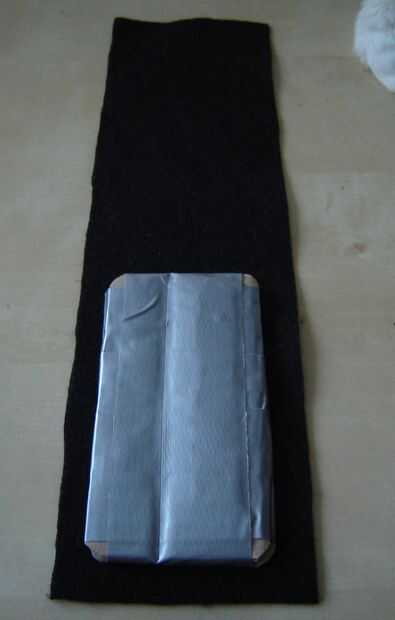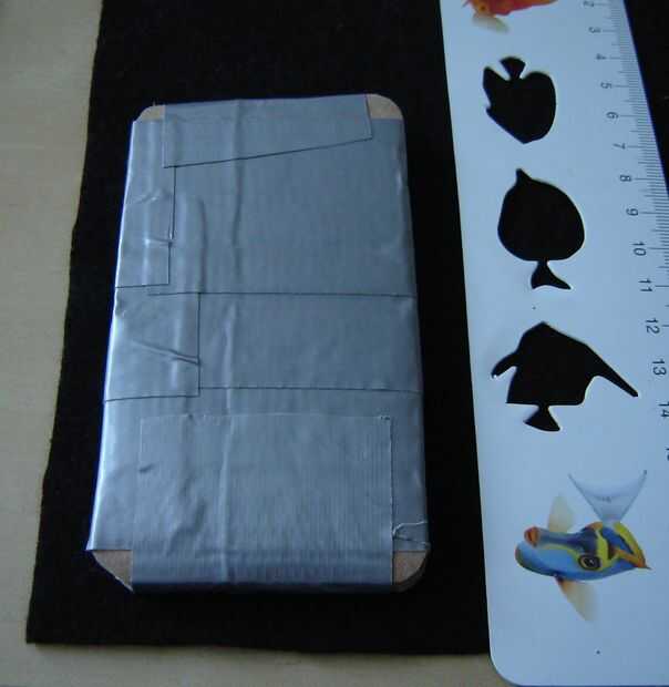 • Usé a este cartón suplente (cubierto en cinta) para medir la longitud y anchura que necesitaría para el fieltro dentro de la guarnición.