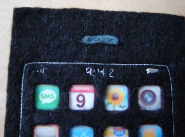 • Corté un trozo de tela gris para el auricular y mano la sutura en el lugar (imagen 3).