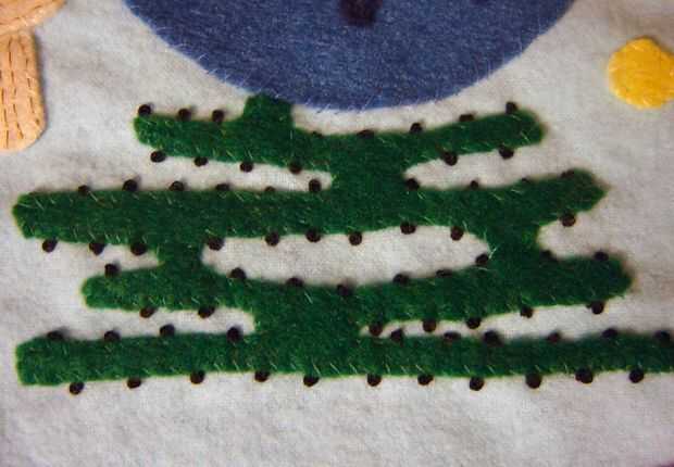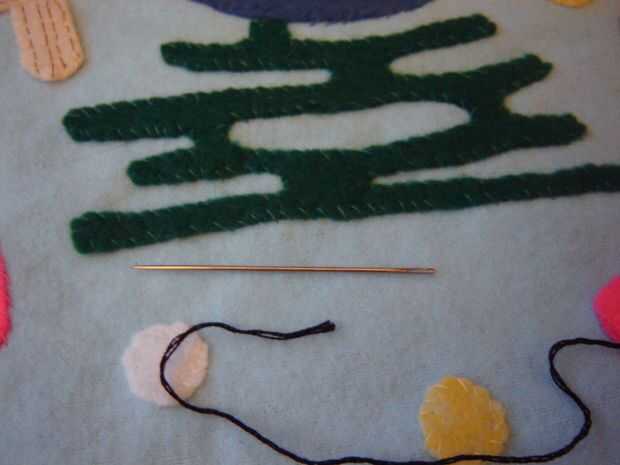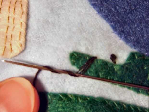 • Desde la parte inferior de la tela tire la aguja roscada a través.