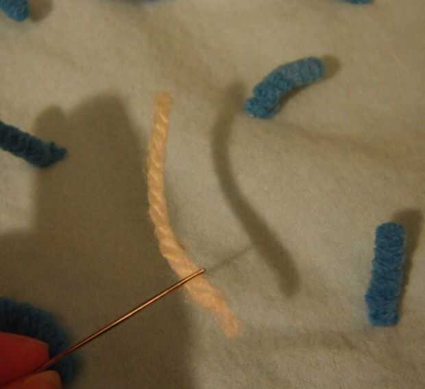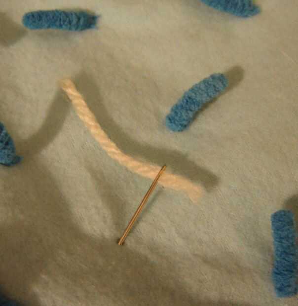 • También usé corta hebras de hilo en la superficie celular. Sólo tiró de un extremo de la hebra a través del tejido, había anudado en la parte posterior y había ajustado a la longitud correcta.