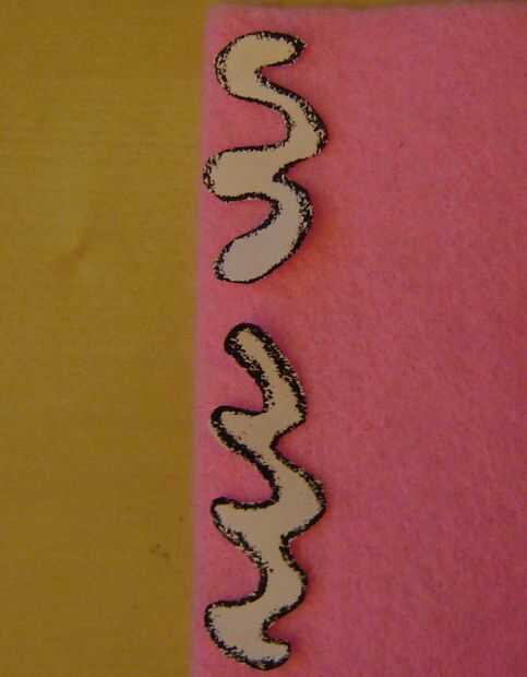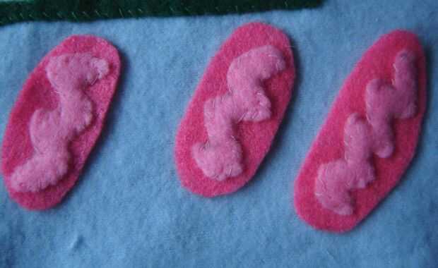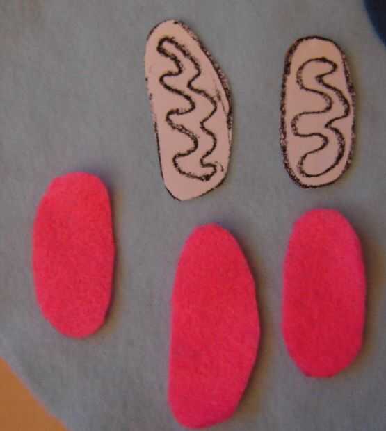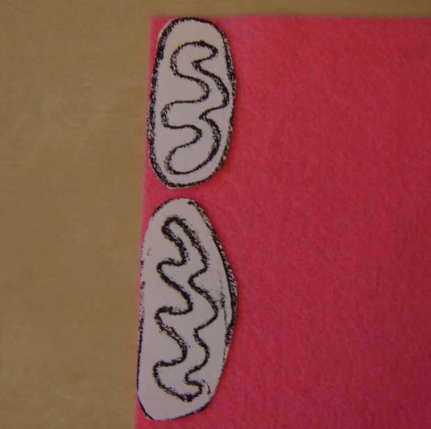 • Colocar la plantilla sobre el fieltro, cortar el borde exterior de la mitocondria