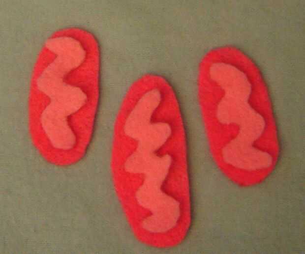 • En una pieza similar color de fieltro cortar los cristae de las mitocondrias (puede que necesite cortar primero esta parte de la plantilla).