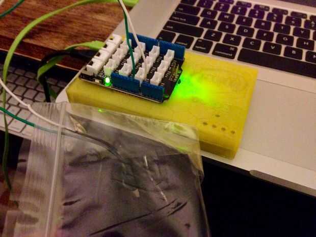 Este sensor realmente no podría ser más simple. Elige uno de los cables que salen de su sensor y denotar que uno negativo. No importa que uno - sólo necesitamos uno para ir a tierra y para ir a una entrada analógica. Conecte el negativo a tierra y conecte el otro cable en A0 (analógica 0) en su Edison.