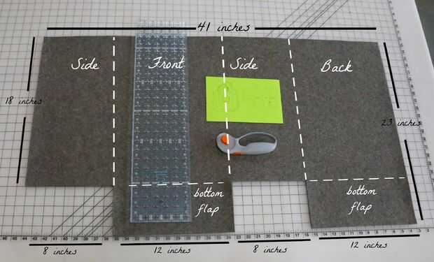 Usé una alfombra de auto-sanación para corte, junto con un borde recto (regla) y una cuchilla giratoria. Seguro, tijeras pueden cortar el fieltro, pero desde que yo estaba haciendo más cortes, pensé que un cortador rotatorio dejaría las líneas más limpias. Lo que hizo!