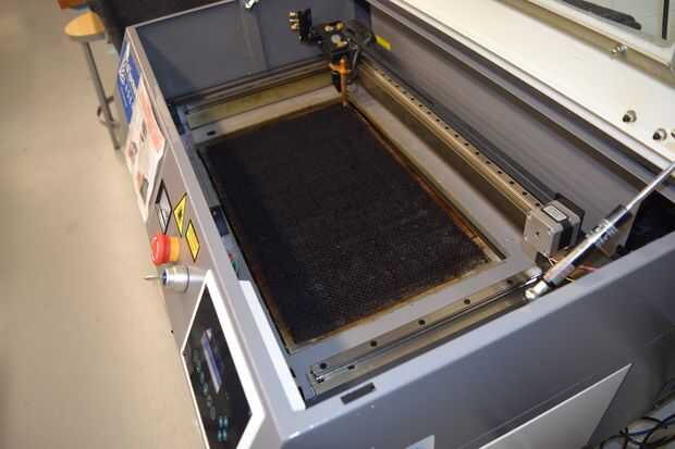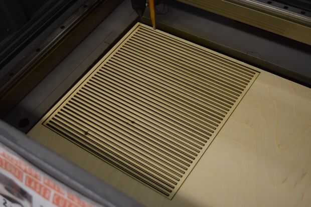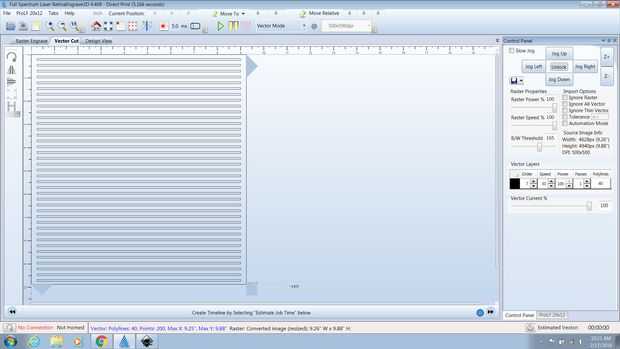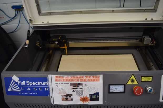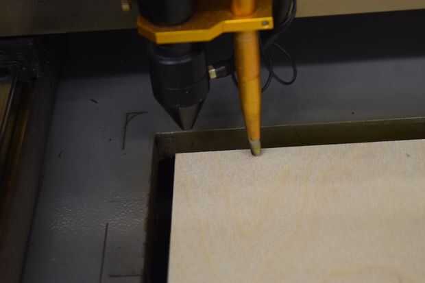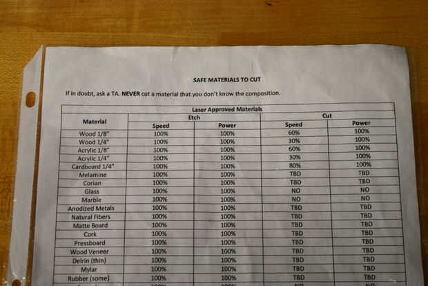 7. Ajuste la velocidad de cabezal de láser y el poder. El estudio Maker proporciona una útil chuleta para los lasers de FS, y me dijeron que para cortar 1/4" madera contrachapada del abedul que necesitaría ejecutar el trabajo en un 30% la velocidad de y 100% de potencia.