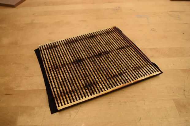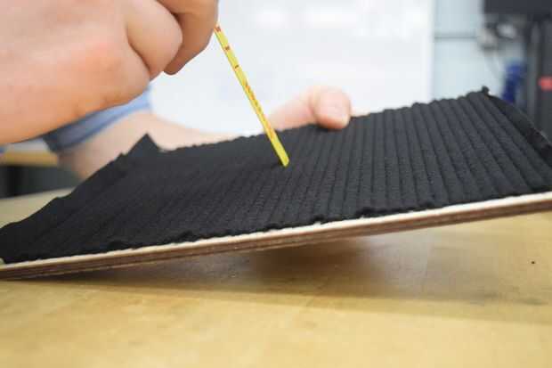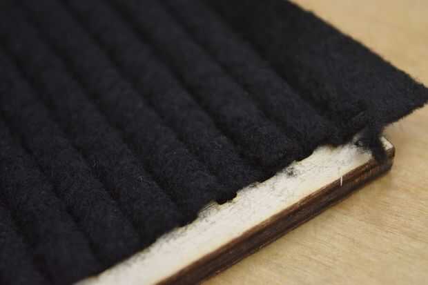 El fieltro tiene que ser mucho más largo de lo que pensaba originalmente. Cometí un error en mi primera tabla cortando un trozo de fieltro demasiado corto. Tenga en cuenta cómo el plegamiento de los de fieltro se suman y acortar la pieza. Creo que una buena regla es para usar una longitud de fieltro que es de aproximadamente 4 x la longitud de tu tabla (medidas verticalmente a través de las ranuras) mi diseño es alrededor de 10" y utilicé unos 40" pena de sentido. Sabia usted querrá añadir un poco de anchura fudge factor desalineamiento.