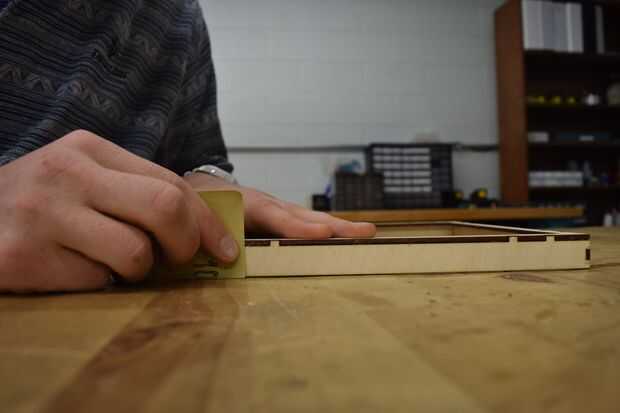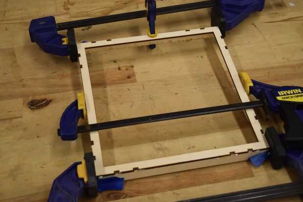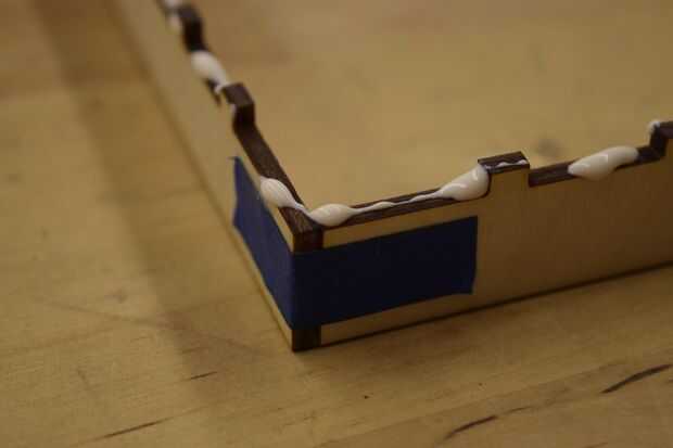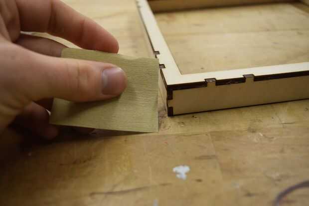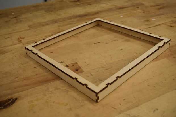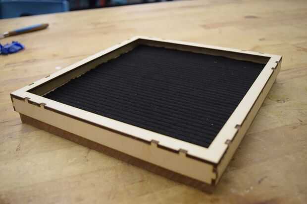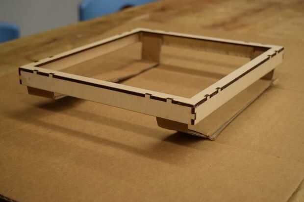 Tomé mis medidas vuelta a Inkscape y empezó a crear esencialmente una caja con un lado faltar. Empareja todas las dimensiones y añadido fichas para que las piezas encajan. Me equivoqué aunque y descuidaron el factor en el corte del laser para el producto final no era perfecto, pero era bastante dang cerca. El marco pegado arriba veía grandes y en forma sobre el fieltro Junta estupendamente.