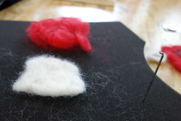 - Cuando las fibras como has comenzado a la estera juntos en una pieza entera, el fieltro del tirón hacia abajo y continuar punzante.