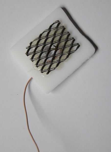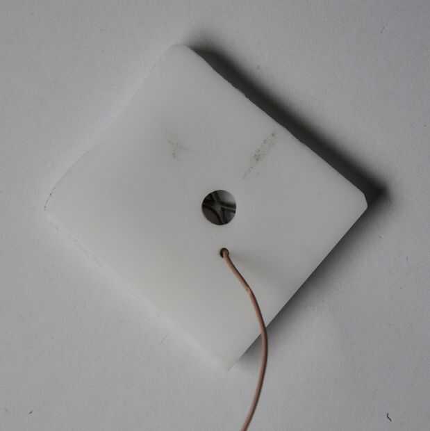 - Un alambre se suelda en el centro del marco de alambre y alimentado a través del agujero.