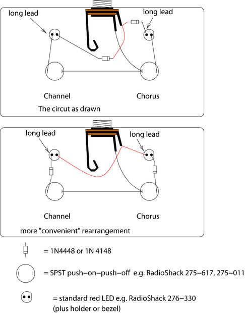 que era para un amplificador Fender Princeton 112 Plus. Sin embargo encontré que también funciona para un coro de Princeton. Muchas gracias al usuario pgcorky para postear esto. Es bastante fácil de construir, sólo recuerda que hay instrucciones específicas para diodos como comentó en la foto. También es fundamental usar un jack mono de 1/4". Conectores estéreo no funcionarán.