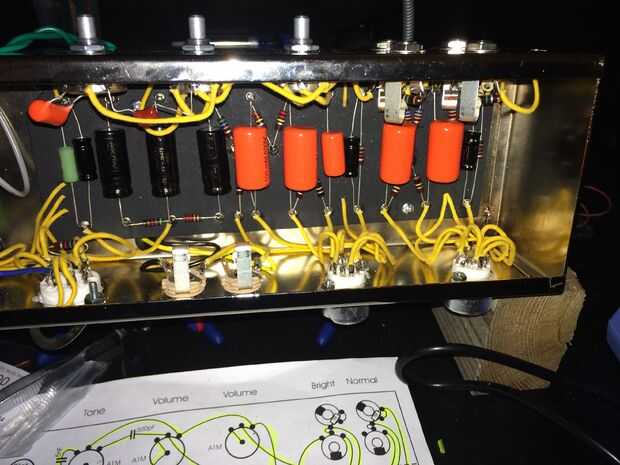 Después de que el altavoz conectores podemos empezar a conectar las tomas de tubo de pre-amp de 9 pines para los Triodos y los zócalos de 8 pines para los pentodos de potencia amp y el rectificador de tubo. Preste especial atención al pinout de los conectores del tubo para evitar errores en el cableado.