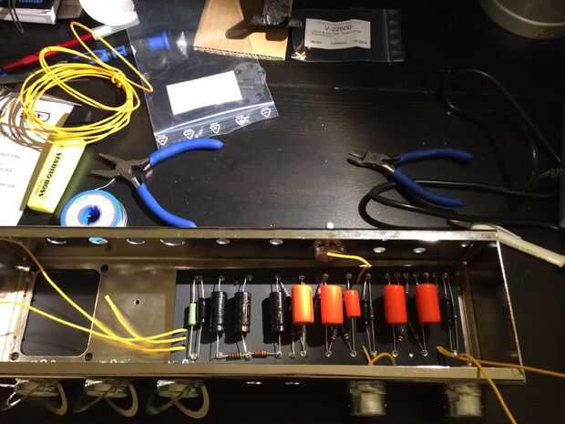 El siguiente paso es instalar los conectores de tubo en el chasis. Preste atención a la posición del pin correcto de las tomas con respecto a la disposición de amp y esquema de cableado. El diseño muestra el pinout del interior del chasis.