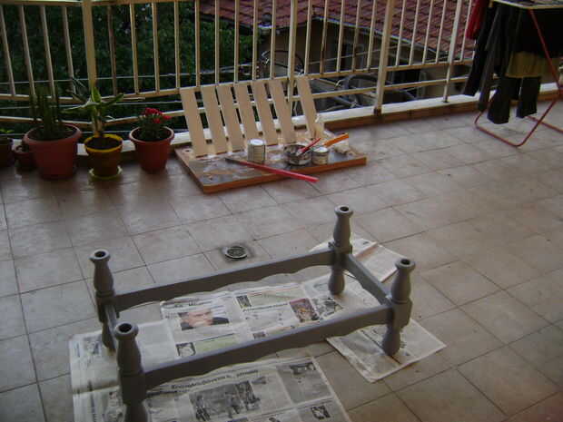 Lista de materiales:Cualquier tabla que se desea renovar. (Yo usé una vieja mesa que fue dañada en una tormenta).Pintura. Cualquier color va a hacer. Te recomiendo pintura látex exterior.Pintura de pizarra. Color de su elección. Usted puede encontrar