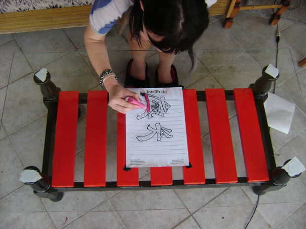 Dibujamos con la pintura de cristal tras el signo de la papel...