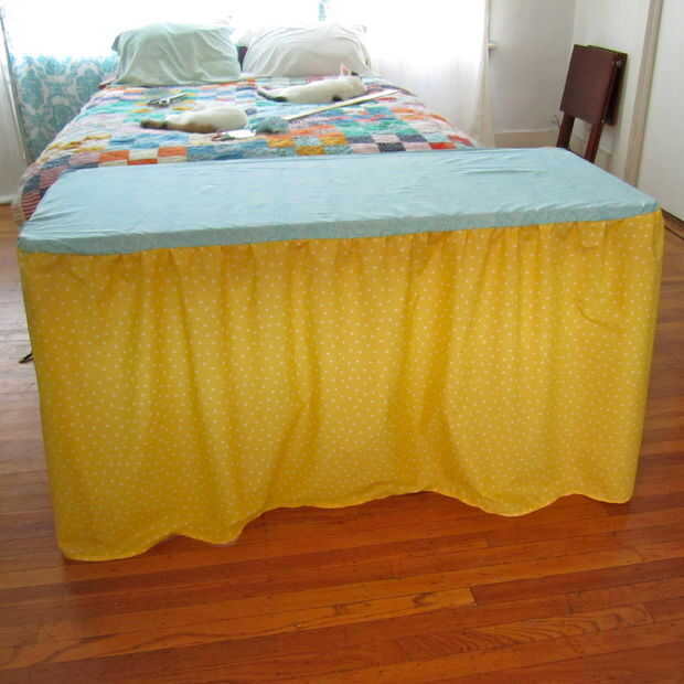 hacer la tarea servil de planchado algo espectacular!!Cubrir planchar metal frío con algo alegre y animado!Materiales:1 3/4 yardas de algodón o lino 45" o 60"1 3/4 yardas de lana no Fusible4 yardas Extra ancho doble doble de cinta de biesElástic