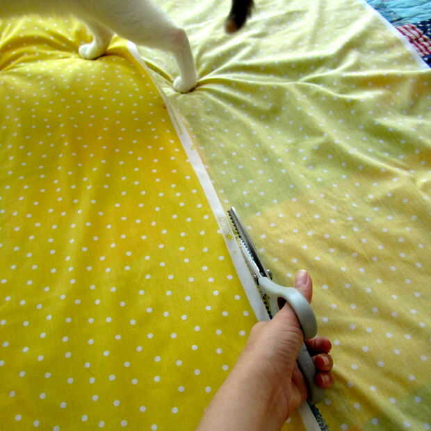 Una vez que se cubrió de principio a fin, corte derecho donde está el borde de la tela. Ahora que tienes a la tela de su falda!